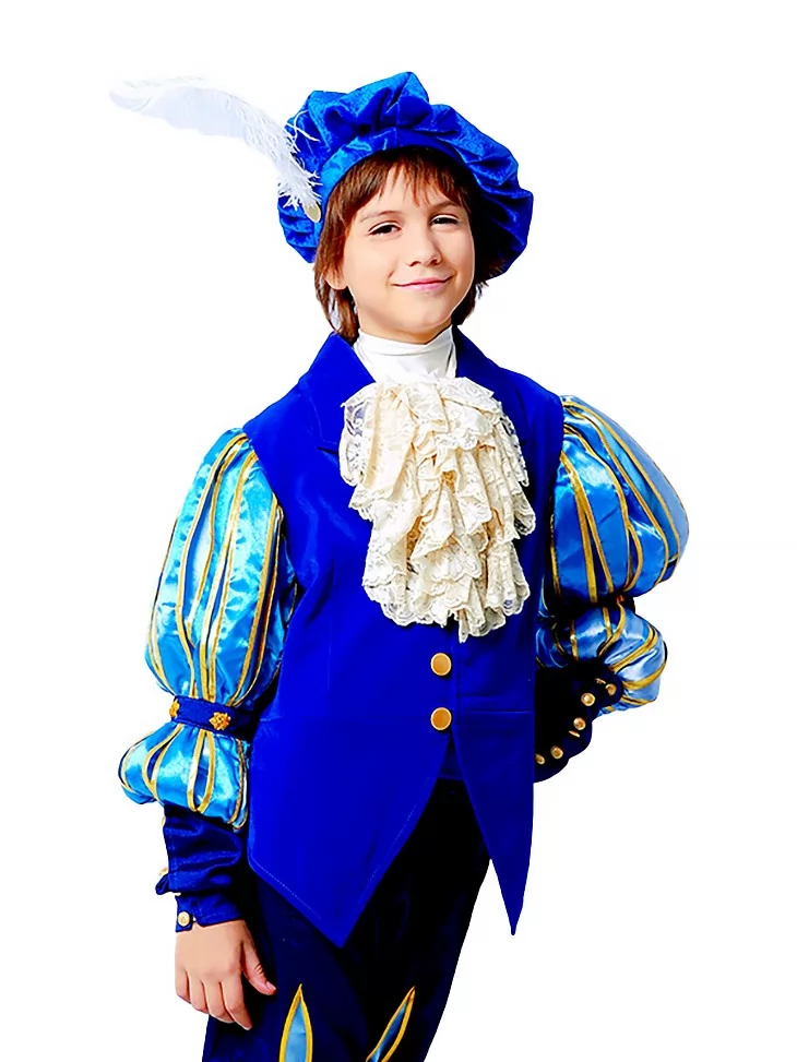 Витончений, шляхетний і сповнений спокійної впевненості — образ юного принца, який звик до балів, церемоній і уваги двору. Саме такі костюми часто обирають для оренди карнавальних костюмів, коли потрібен класичний, але виразний персонаж.