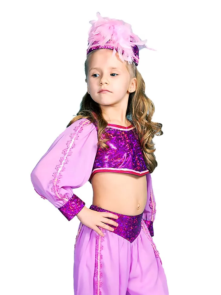 Костюм Індійської Танцівниці «Рожева Мрія Сходу» допоможе створити яскравий, казковий образ, у якому кожен рух виглядає як частина справжнього східного танцю. Костюм виглядає легко й святково, добре читається на сцені та у фотосесіях, тому його часто обирають і для прокат карнавальних костюмів на дитячі свята й тематичні заходи.
