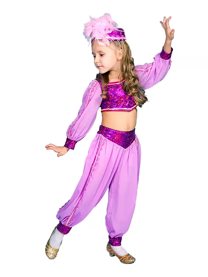 Легкий, яскравий і по-справжньому сценічний образ, натхненний барвистим світом індійських танців та свят. Ніжні лавандово-рожеві відтінки, блискучі вставки й вільний крій створюють відчуття руху, ритму та казкової атмосфери Боллівуду. Цей образ ідеально підходить для оренда карнавальних костюмів, коли потрібен ефектний східний стиль для танцю або виступу.