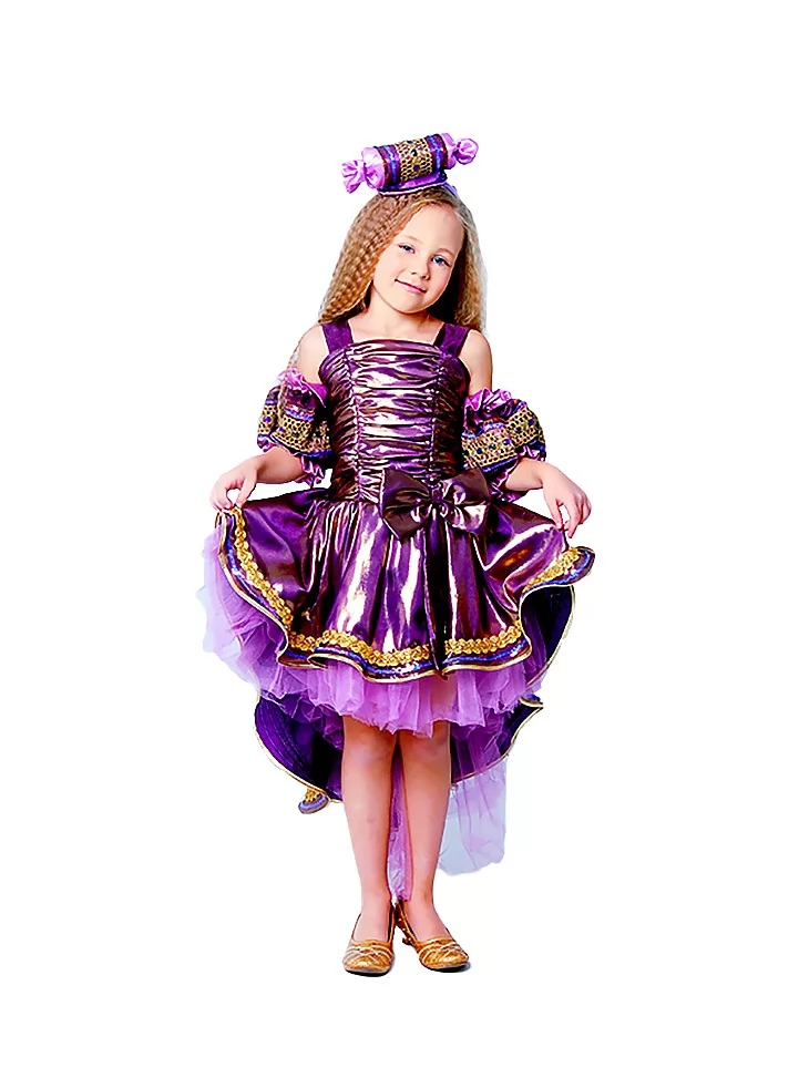 Солодке натхнення для яскравого свята! Якщо ви шукаєте вражаючий варіант для дитячого виступу чи ранку — оренда карнавальних костюмів дозволить створити чарівний образ без зайвих витрат. Костюм "Фіолетова Цукерочка" – це справжній святковий вибух кольору, блиску та стилю.