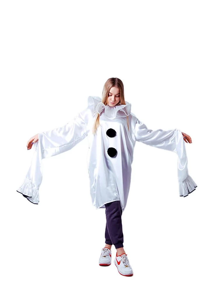 Костюм «Місячний П’єро» переносить у світ поезії, ніжності й легкого смутку. Натхненний класичним образом трагічного клоуна з італійської комедії дель арте, цей костюм створений для тих, хто цінує глибину образу й атмосферну естетику. Білосніжна тканина, вільний крій і характерні чорні помпони створюють делікатний, майже музичний образ. Ідеально підходить для театральних виступів, тематичних фотосесій, карнавальних вечірок або дитячих свят. Завдяки послузі оренда карнавальних костюмів, ви зможете втілити цей витончений образ без потреби купівлі.