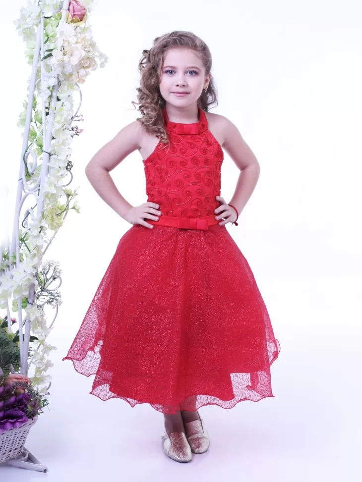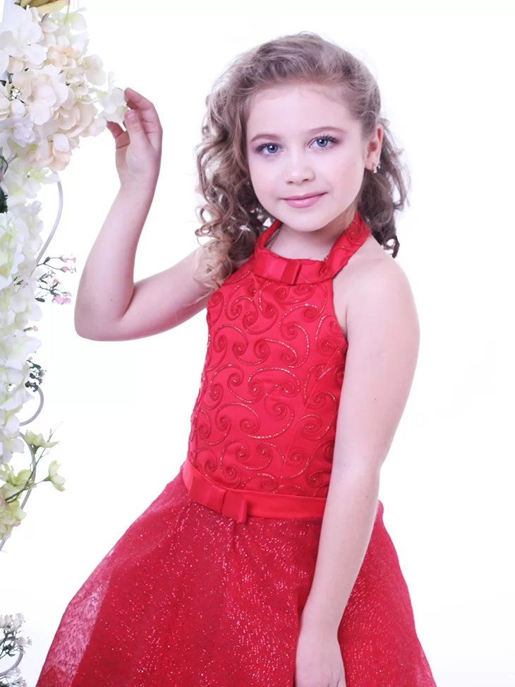 Яскравий, елегантний та по-справжньому святковий образ, що випромінює впевненість, радість і казкову розкіш. Насичений червоний колір у поєднанні з повітряною блискучою спідницею створює ефект сцени й урочистого виходу, а витончений корсет із декоративним візерунком підкреслює силует маленької принцеси. Ця сукня стане чудовим вибором для оренди карнавальних костюмів на виступи, фотосесії та святкові події, даруючи дитині відчуття справжньої зірки балу та море захоплених поглядів.