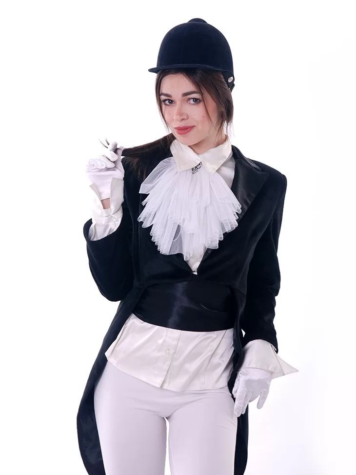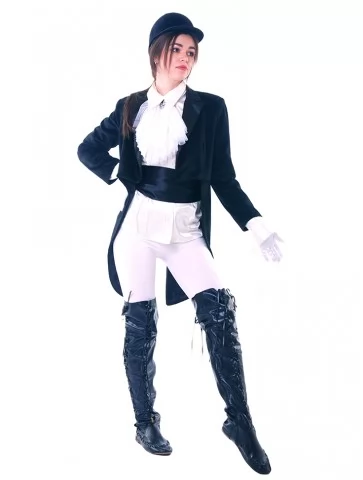 Ефектний, сміливий та сценічно вишуканий образ наїзниці, що поєднує класичну елегантність циркового стилю з динамікою руху та впевненістю характеру. Контраст чорного фрака з білими елементами створює яскравий силует, який одразу привертає увагу. Цей костюм виглядає стильно й артистично, чудово підходить для оренди карнавальних костюмів на шоу-програми, тематичні вечірки, фотосесії та святкові заходи з атмосферою цирку або театру.