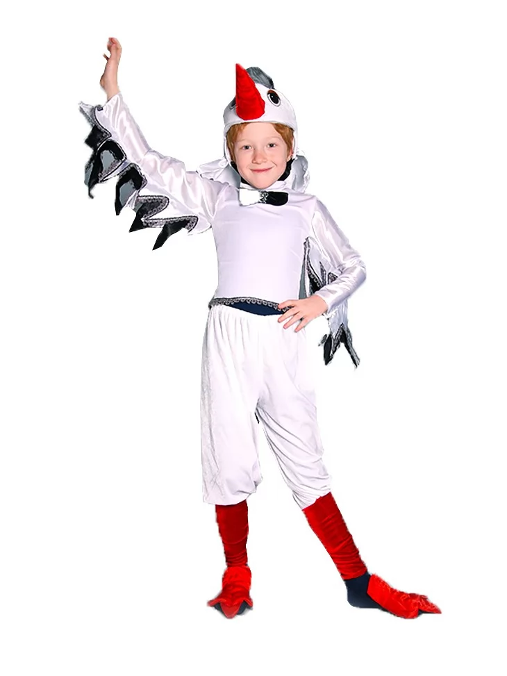 Легкий, витончений і по-справжньому святковий образ лелеки асоціюється з весною, добром і казковими історіями про щастя та нові початки. Це чудовий варіант для оренди карнавальних костюмів на дитячі ранки, весняні свята та театралізовані виступи.