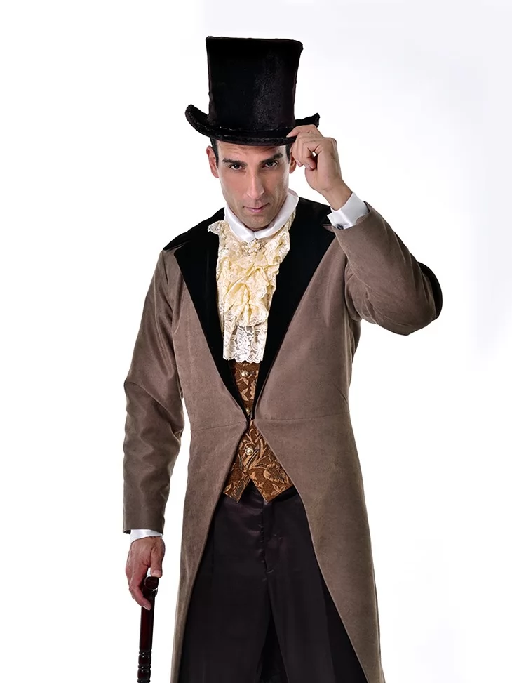 Костюм Джентельмен Минулого Століття втілює стриману елегантність XIX століття, уособлюючи джентльмена, що крокує лондонськими вулицями у вечірніх сутінках. Завдяки прокат карнавальних костюмів цей класичний образ можна легко приміряти для будь-якої події з історичним або театральним підтекстом.