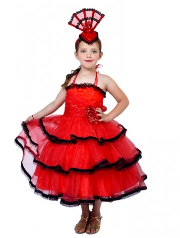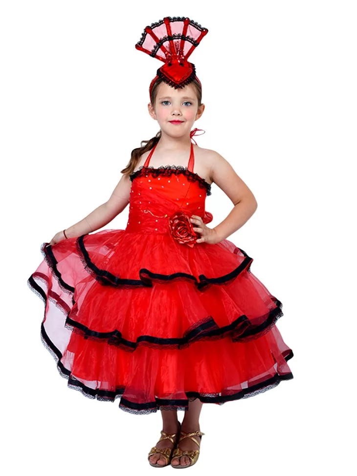 Яскравий, темпераментний і по-справжньому сценічний образ, що передає дух іспанського танцю та характер Кармен. Насичений червоний колір, повітряні шари спідниці та контрастний чорний декор створюють ефект руху навіть у статичній позі. Ідеальний варіант для оренди карнавальних костюмів на виступи, свята та фотосесії.