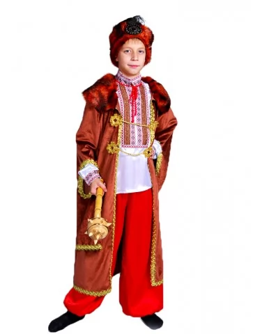 Цей образ уособлює владу, силу та історичну гідність українського козацтва. Костюм гетьмана виглядає урочисто й велично. Це вдалий вибір для оренди карнавальних костюмів на шкільні постановки, патріотичні заходи, фестивалі й тематичні фотосесії.