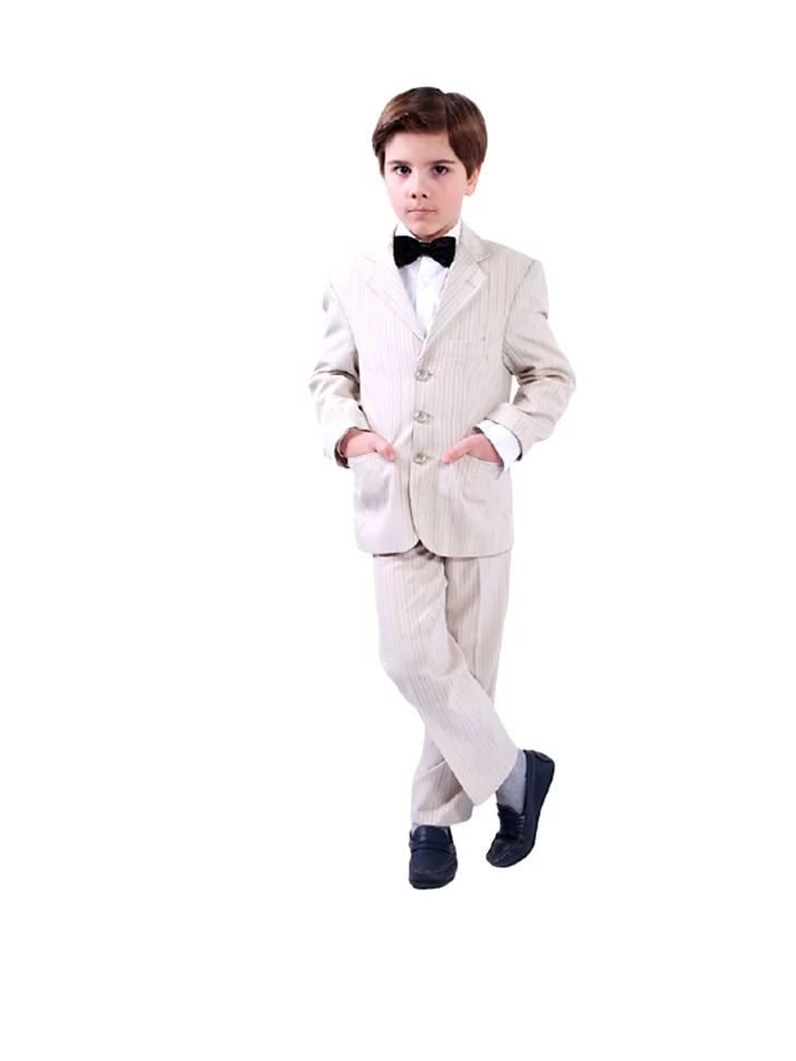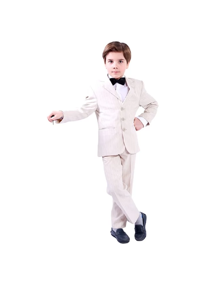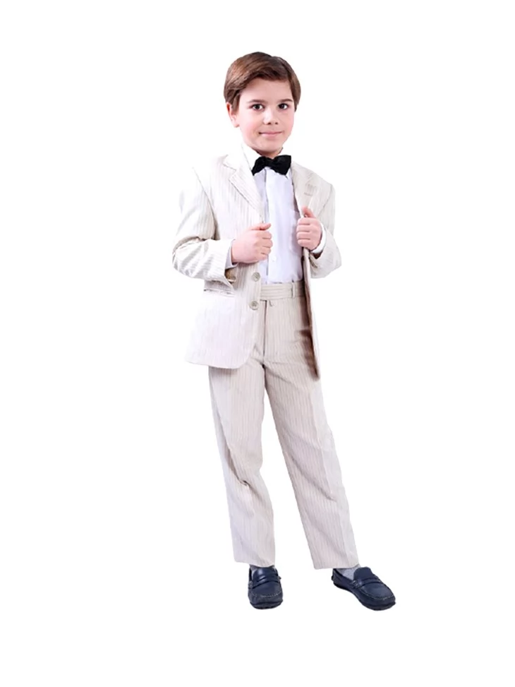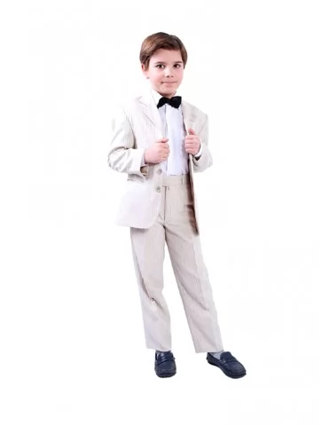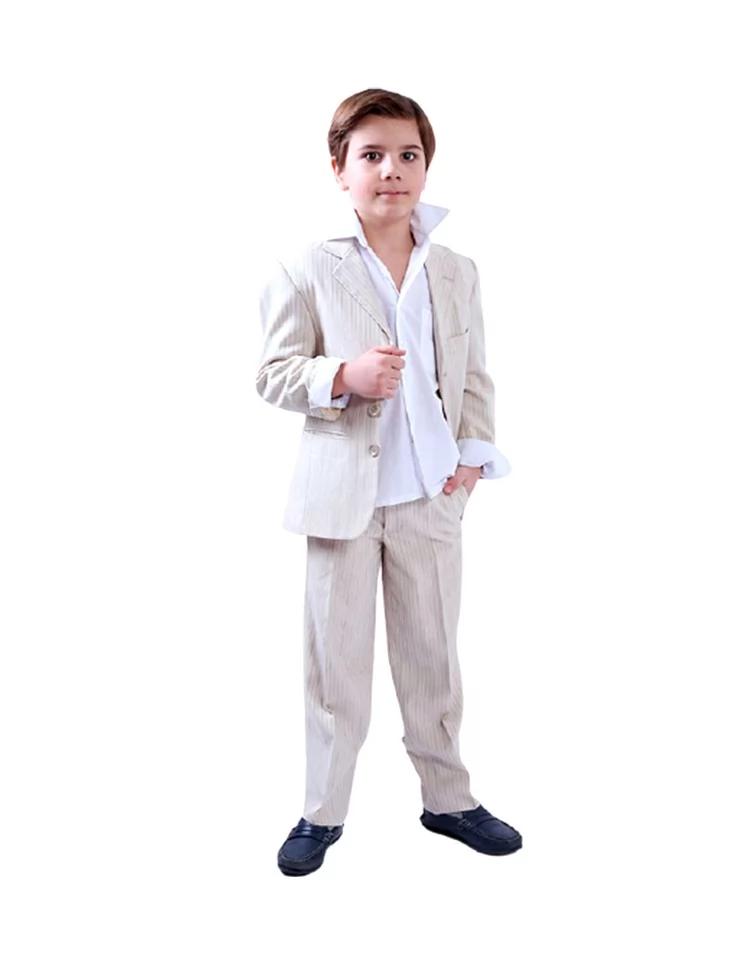 Цей елегантний образ ідеально підходить для святкових подій, де потрібен стильний та охайний вигляд. Світлий піджак і штани створюють класичний костюм у форматі “маленький джентльмен”. Чудовий варіант для оренди карнавальних костюмів на шкільні свята, фотосесії, виступи та тематичні заходи.