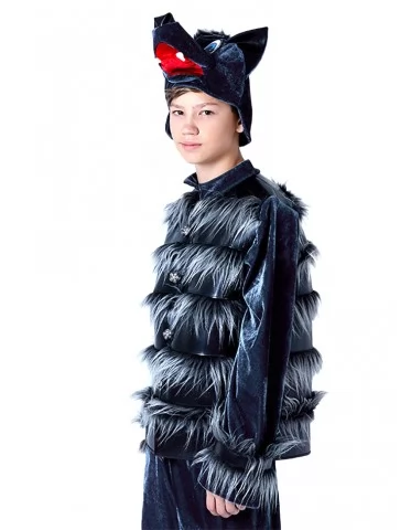 Сміливий, динамічний і трохи казково-загадковий образ вовка одразу привертає увагу та створює ефектний сценічний образ. Фактурна куртка з хутряними вставками, глибокий темний відтінок і виразна шапка з вовчою мордочкою формують впізнаваний образ лісового хижака. Це чудовий вибір для оренди карнавальних костюмів на вистави, дитячі ранки, тематичні свята та фотосесії.