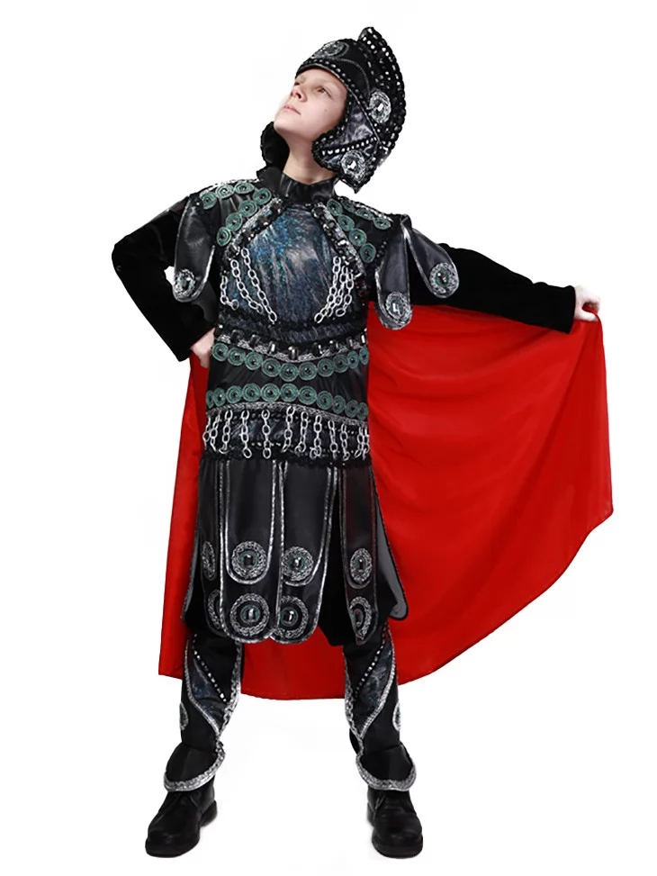 Цей потужний і мужній образ створений для справжнього героя, який готовий захищати королівство та перемагати у будь-якій битві. Темні шкіряні обладунки з декоративними елементами виглядають дуже ефектно. Ідеальний вибір для оренди карнавальних костюмів на виступи, тематичні свята, фотосесії та костюмовані заходи.