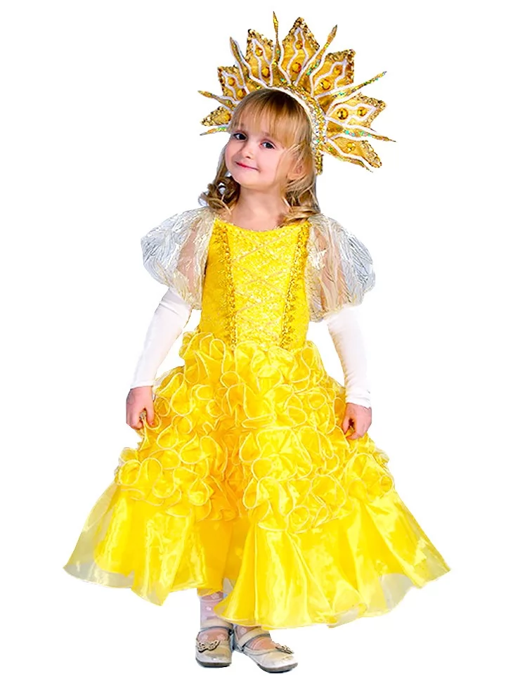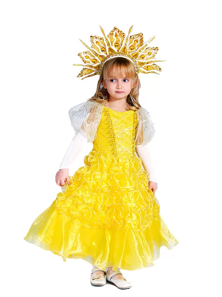 Цей образ створює атмосферу справжнього сонячного свята та робить маленьку акторку центром уваги на сцені. Обирайте його у прокаті карнавальних костюмів, щоб маленьке Сонечко засяяло на будь-якому святі.