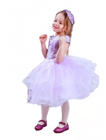 Повітряна, світла й по-справжньому казкова сукня, що створює образ маленької принцеси з чарівної історії. Лавандовий відтінок надає ніжності, а витончене мереживо на корсеті додає святкової вишуканості. Об’ємна багатошарова спідниця з фатину красиво тримає форму та ефектно рухається під час танців і прогулянок. Це чудовий варіант для оренди карнавальних костюмів на свята, фотосесії та урочисті події. А для тих, хто шукає справді розкішний образ для дитини, прокат карнавальних костюмів із такою сукнею стане безпрограшним рішенням.