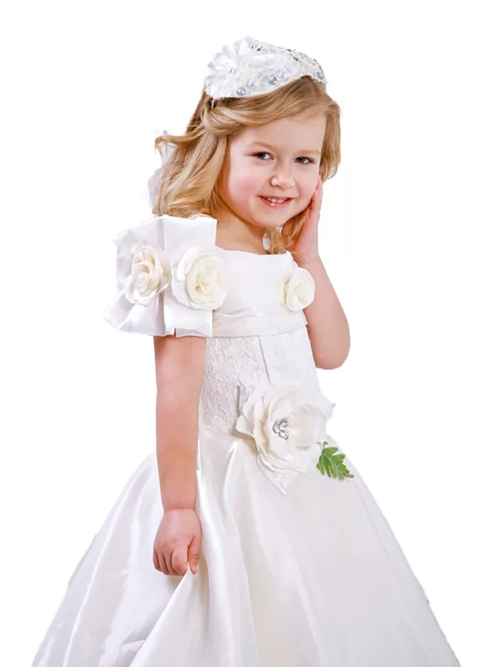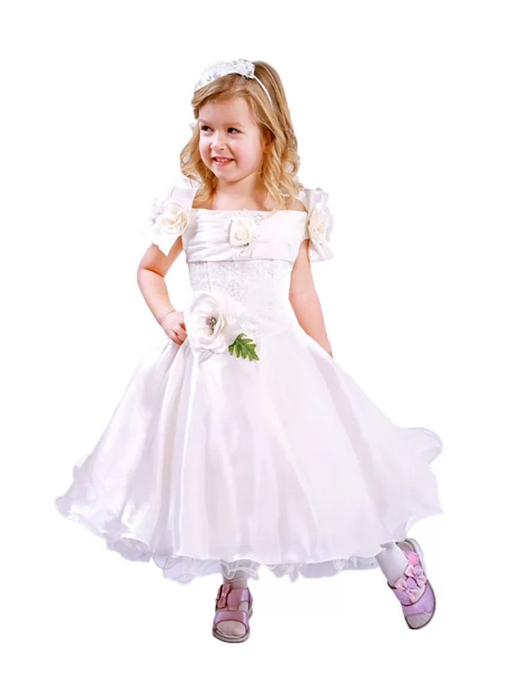 Ніжний квітковий образ, що випромінює світло, витонченість і справжню казкову елегантність. Білосніжна сукня з м’яким блиском виглядає мов пелюстки троянди під ранковою росою — легка, повітряна та дуже святкова. Об’ємні квіткові елементи на корсеті й талії створюють гармонійний силует та додають образу особливої ніжності. Це чудовий варіант для оренди карнавальних костюмів на весняні ранки, фотосесії та святкові події.