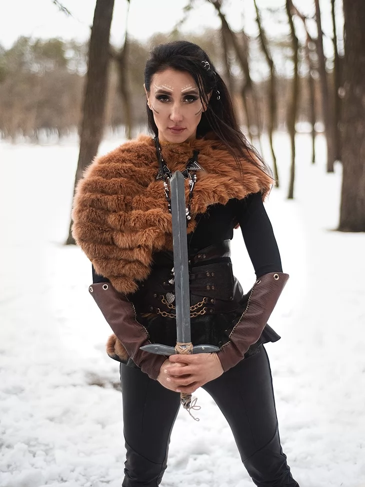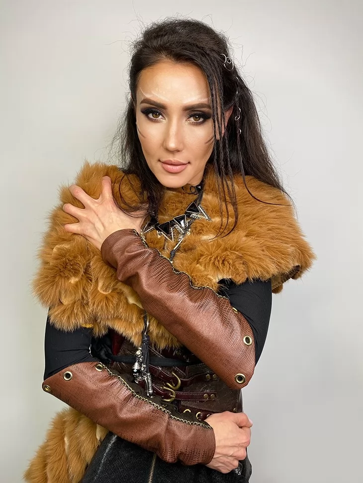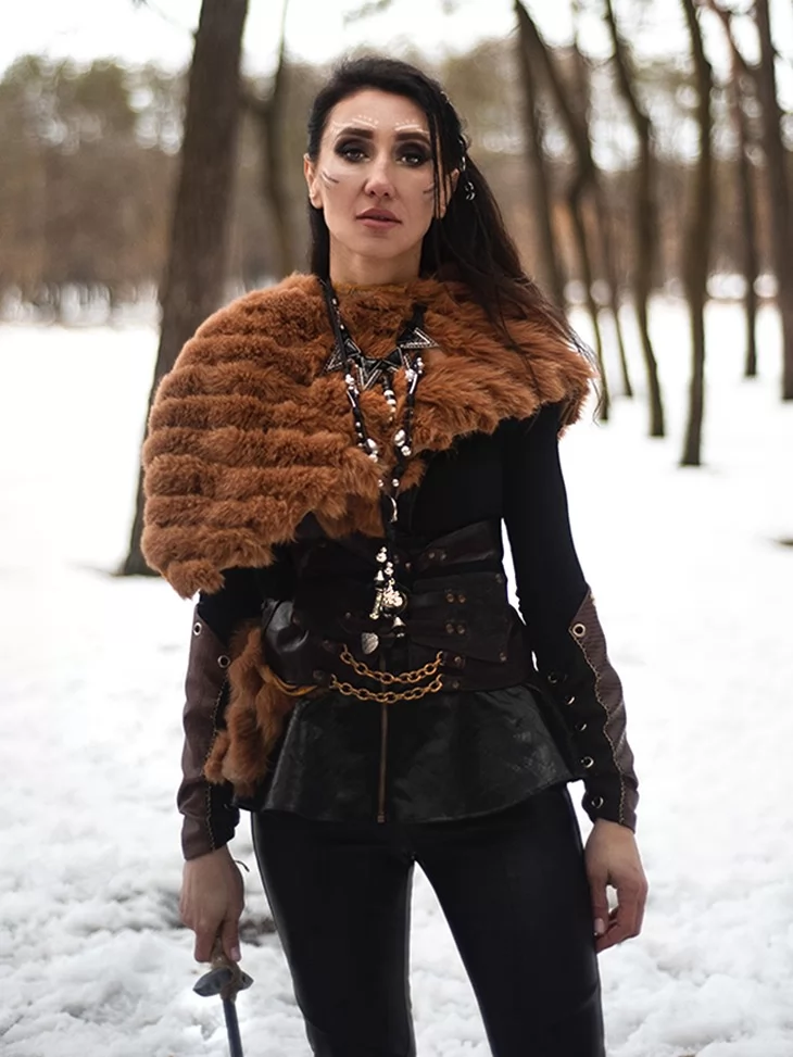 Сценічна харизма, сила й витонченість — усе це втілює образ сучасної амазонки. Якщо вам потрібен стильний та готовий до виходу костюм для виступу, зйомки чи костюмованого заходу, оренда карнавальних костюмів — ідеальний варіант. Цей образ поєднує ефектну текстуру хутра, акцентні елементи шкіри та прикраси, що передають дух дикої незалежності.