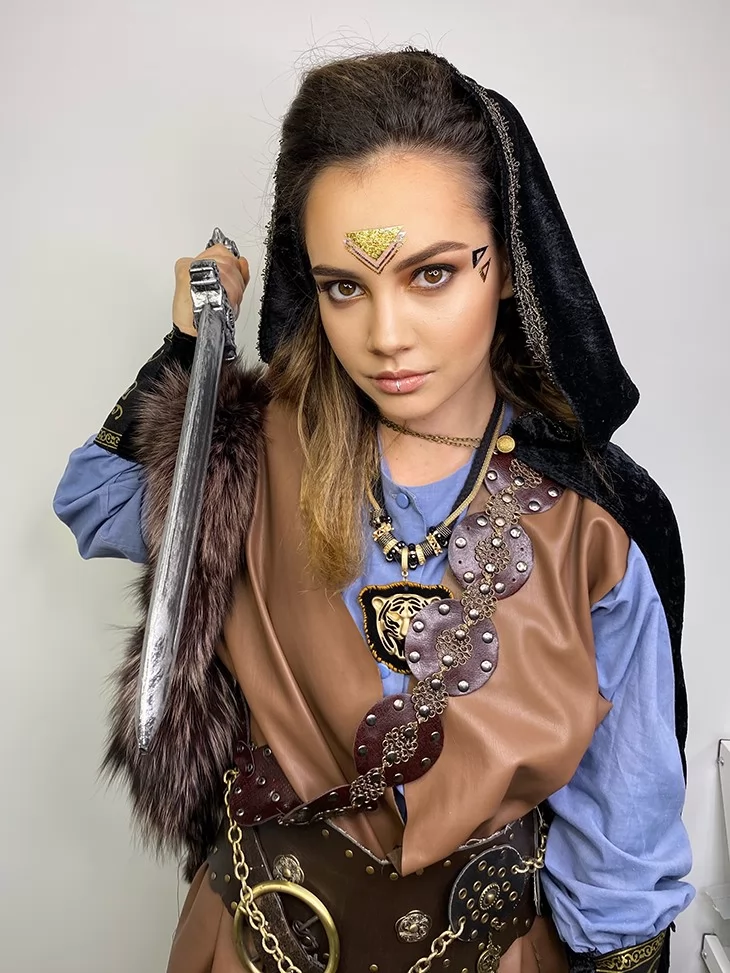Оренда карнавальних костюмів — це ідеальна можливість перевтілитися в героїню давніх саг, лісових битв або магічних племен. Цей костюм амазонки вирізняється багатошаровістю, потужним символізмом у деталях та продуманою гармонією кольорів. Образ підходить як для сценічного образу, так і для яскравих фотосесій у стилі фентезі чи історичної реконструкції.