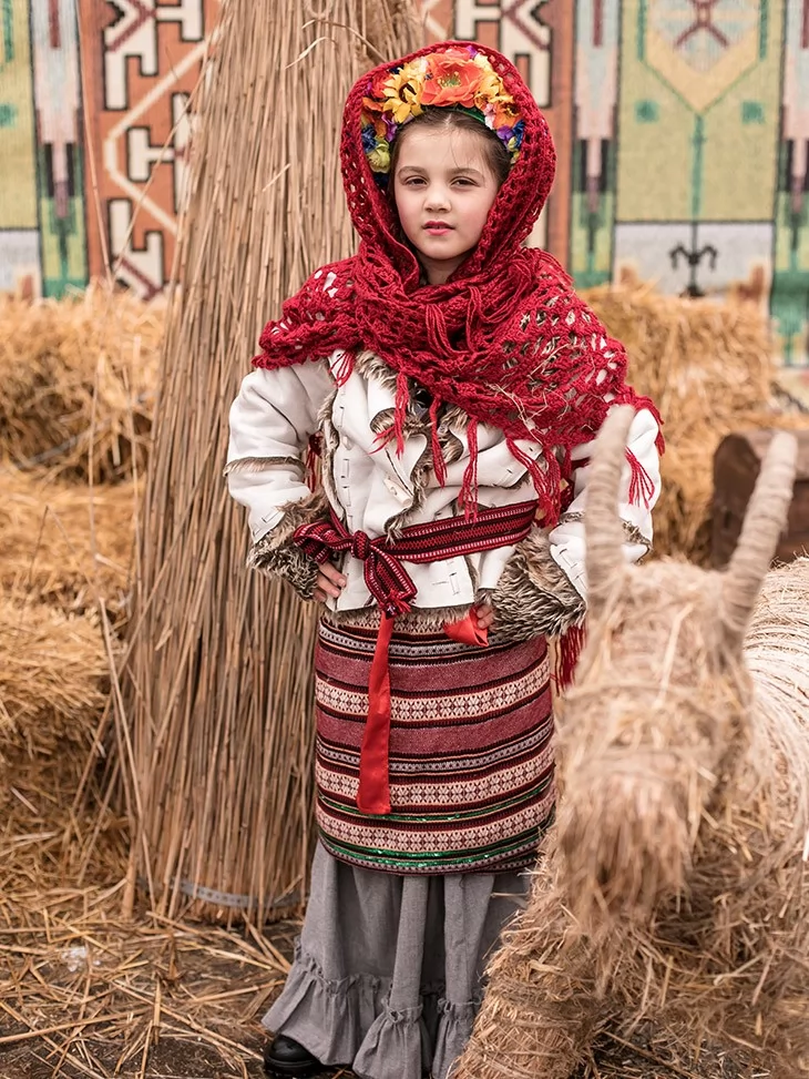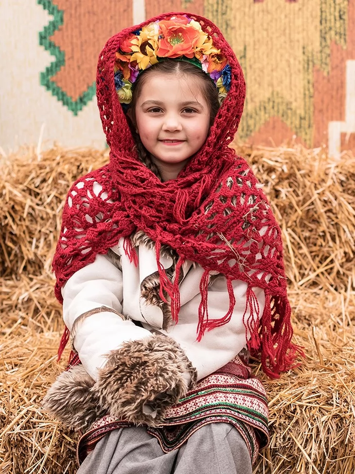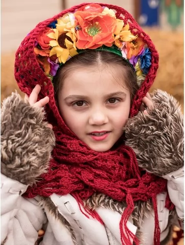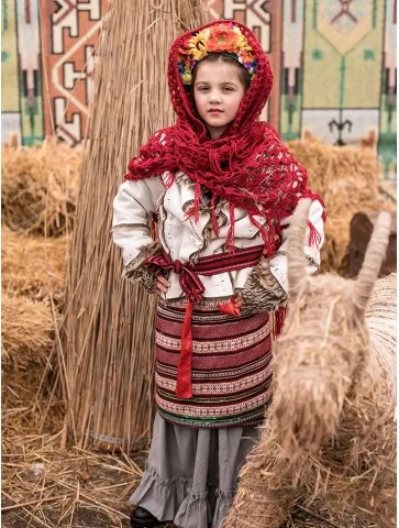 Колоритний і по-справжньому теплий образ, що втілює дух народних гулянь, прощання з зимою та святкової Масляної. Хутряний жупан створює відчуття затишку й захищеності, а плахта зі спідницею та яскравим паском формують виразний традиційний силует. Червона хустка з вінком додає образу святковості та робить його дуже впізнаваним на сцені й фото. Це вдалий вибір для оренди карнавальних костюмів, коли потрібен автентичний народний стиль для дитини.