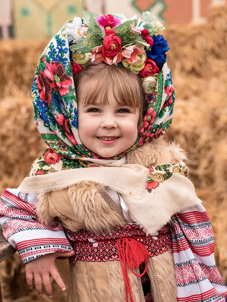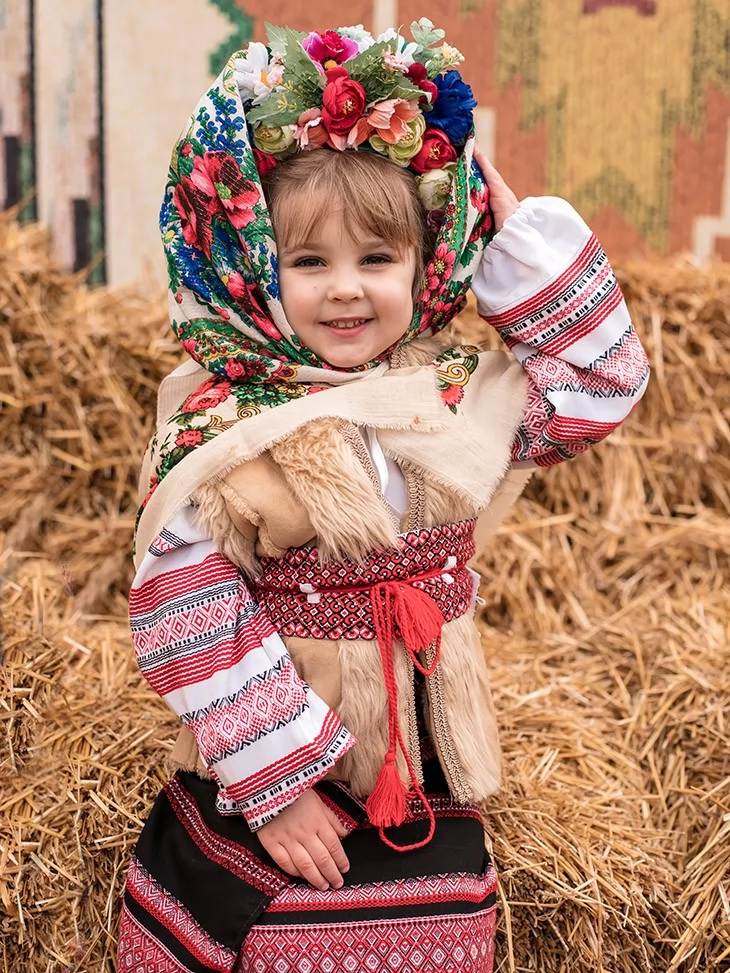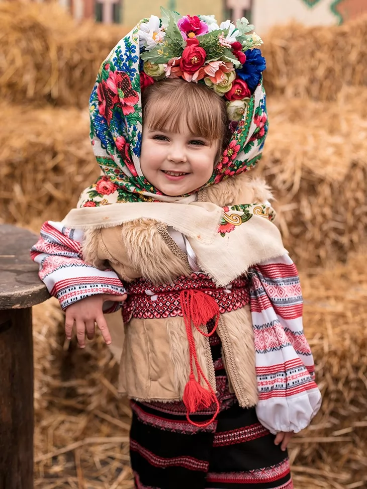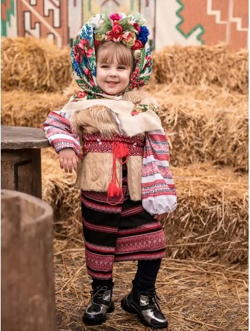 Теплий, колоритний образ, що одразу переносить у атмосферу народного свята, млинців і щирого сміху. Цей костюм поєднує традиційні українські мотиви з затишним зимово-весняним настроєм Масляної. Фактурний кожушок, орнаментовані елементи та квіткова хустка створюють яскравий і дуже фотогенічний образ, який ідеально підходить для святкових дійств. Це вдалий вибір для оренда карнавальних костюмів, коли потрібен впізнаваний народний стиль для дитини.