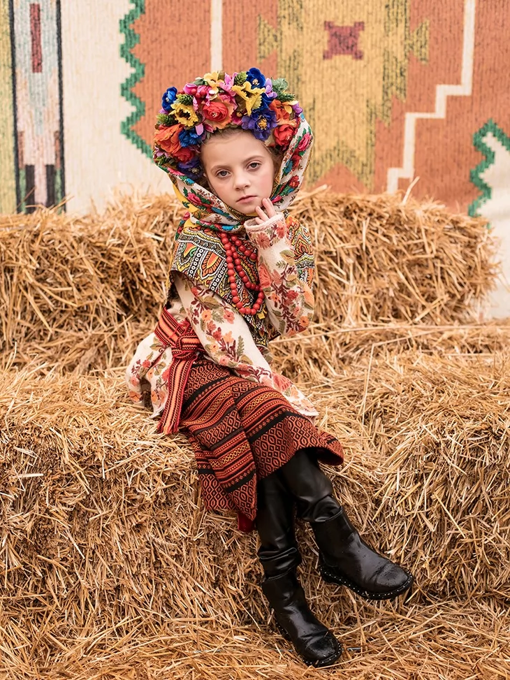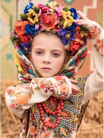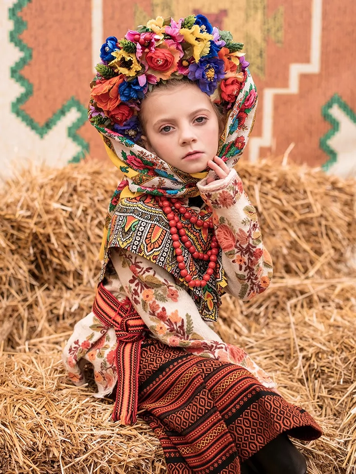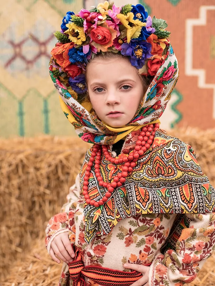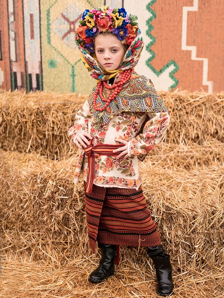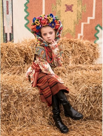 Колоритний, виразний образ із характером, натхненний атмосферою народних гулянь, ярмарків і весняного пробудження. Поєднання квіткового жупану, орнаментованої спідниці та багатого декору створює сценічний силует, який одразу привертає увагу. Яскрава хустка з вінком і коралове намисто додають образу святковості та глибокої автентики. Це вдалий вибір для оренда карнавальних костюмів, коли потрібен впізнаваний народний стиль для Масляної.