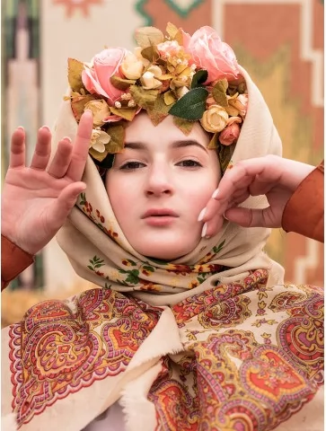 – хустка з орнаментами, зав’язана поверх голови