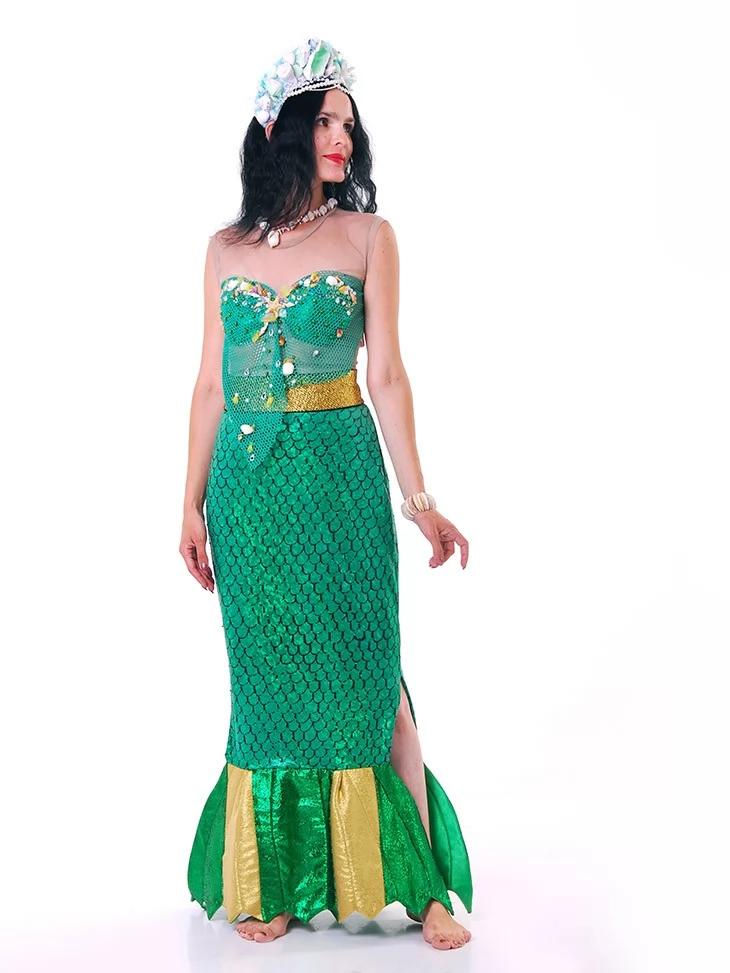 Цей костюм виглядає яскраво, чуттєво й дуже фотогенічно. Обирайте прокат карнавальних костюмів, щоб втілити образ Смарагдової Русалки Морських Глибин і зачарувати всіх з першого погляду.