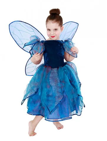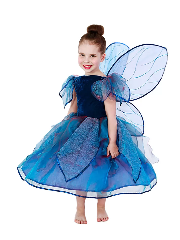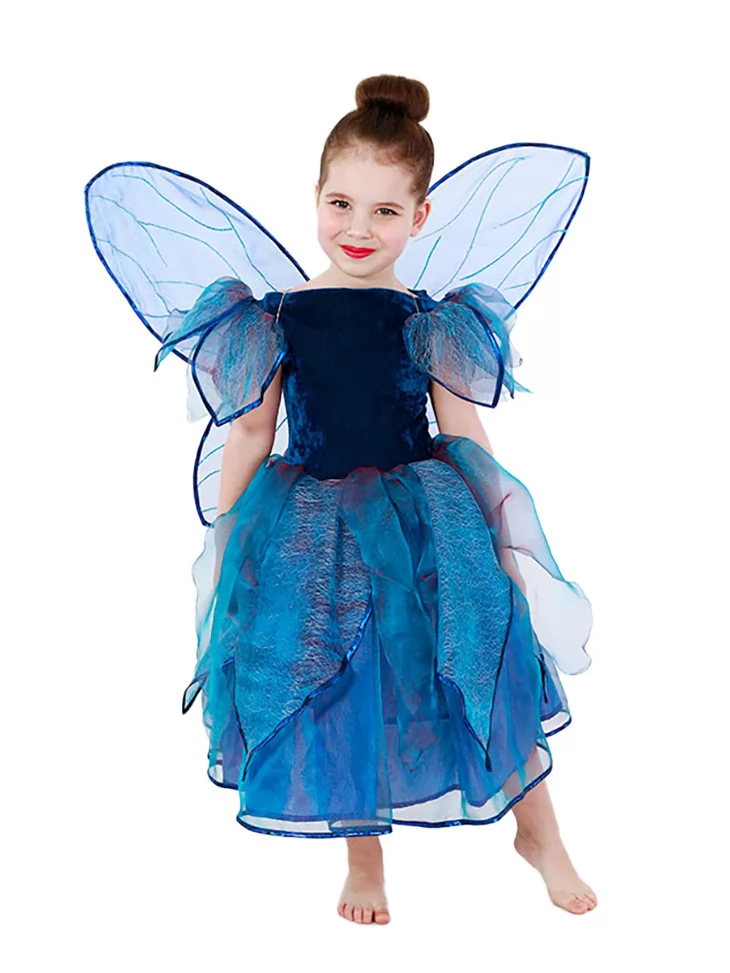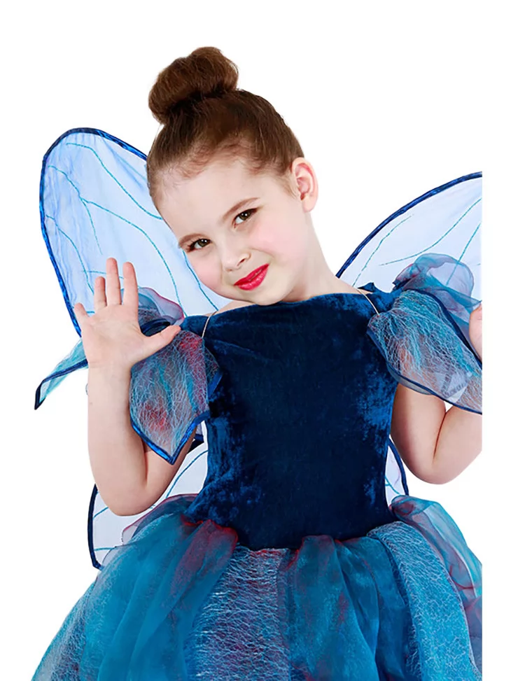 Казковий та загадковий образ, натхненний магією ночі, сяйвом зірок і тихим шурхотом крил у темряві.Насичений синій колір сукні у поєднанні з повітряними елементами створює враження справжньої феї з чарівного лісу. Це чудовий варіант для оренди карнавальних костюмів, коли дитині хочеться перевтілитись у фантазійного персонажа з казки.